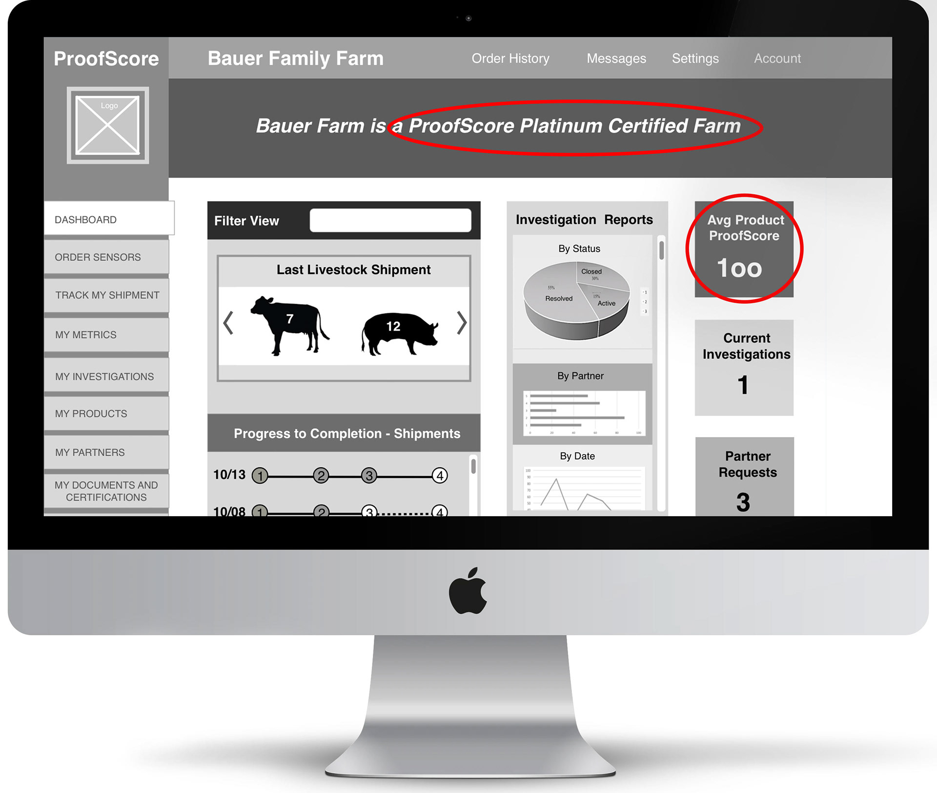 (click) we all decided to adopt the idea of a certification system analogous to the LEED certification system in the building industry. We decided to give the farms of all farmers who agree to adopt the ProofScore product a ProofScore Certified ranking, indicating they are transparent with the temperature and humidity data associated with their animals and meat products. From there, all farmers have the opportunity to increase their rank to Silver, Gold or Platinum. The more sustainable their farming practices are, the more they increase their chance of receiving a higher rank.